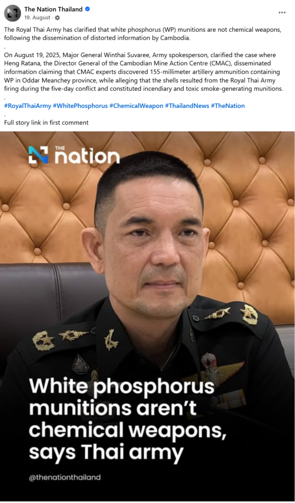 Der Einsatz von weißem Phosphor wurde von der thailändischen Armee – durch thailändische Medien wie z. B. „The Nation Thailand“ – in der Vergangenheit bereits bestätigt: