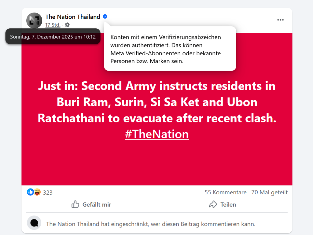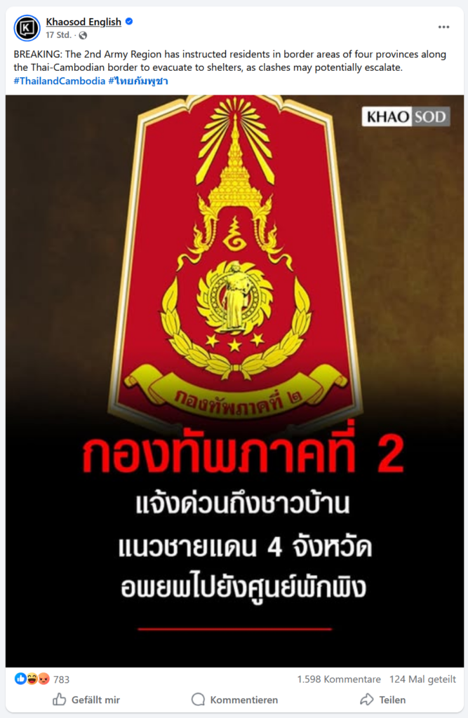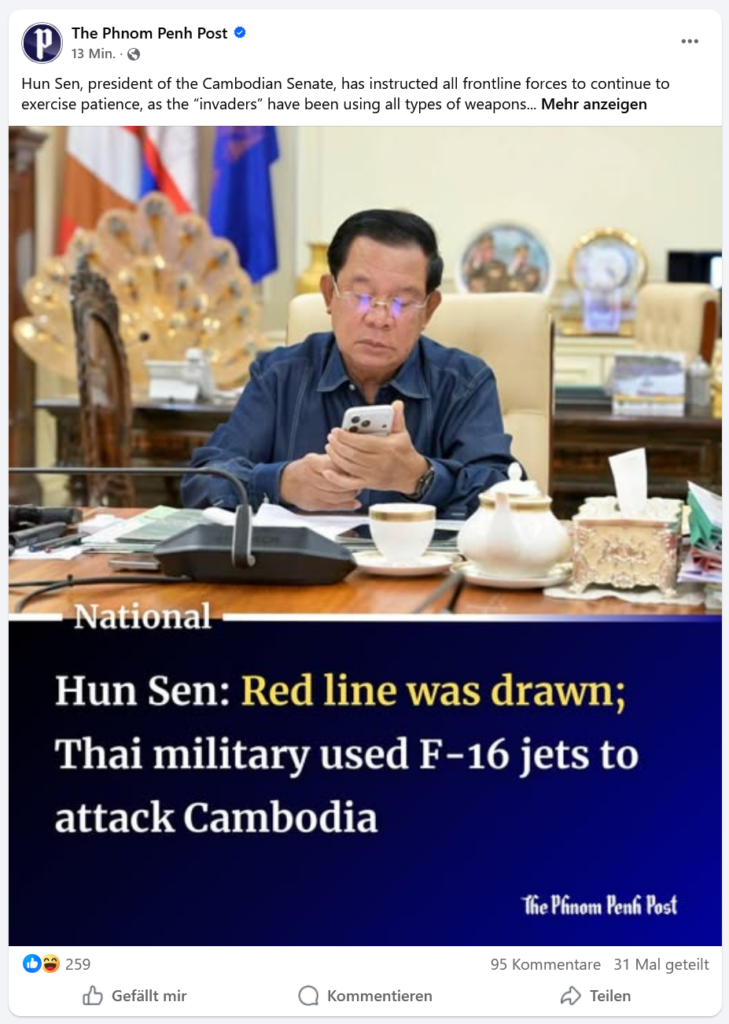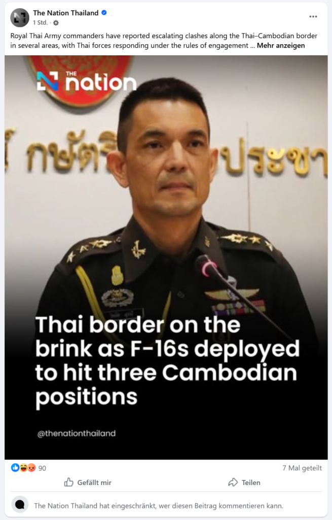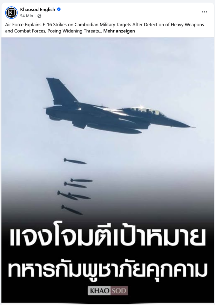 Das thailändische Militär hatte am 7. Dezember die Bevölkerung großflächig aufgerufen Gebiete zu evakuieren und am nächsten Morgen mit zahlreichen weiteren Angriffen provoziert und letztendlich auch wieder Kampfjets eingesetzt um Ziele zu zerstören. Damit war nun auch für Kambodscha die letzte rote Linie überschritten und Kambodscha übt sein legitimes Recht auf Selbstverteidigung gegen den Angreifer Thailand aus.