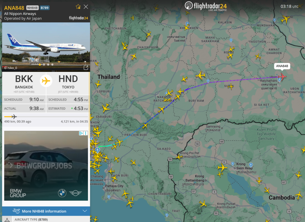 Ebenfalls interessant: Thailand hat berichtet, Kambodscha würde den Flughafen Ubon Ratchathani mit Raketen beschießen, jedoch ist ganz offensichtlich der Luftraum zur selben Zeit nicht gesperrt: